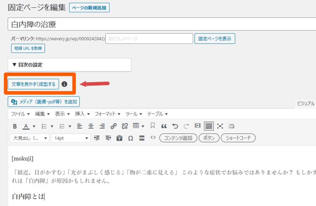 記事を見るWevery!に新機能「文章の自動成型」ボタンが登場。AIが見出しや目次、表やリストを自動整形し、見やすくSEOに強い構成に仕上げます。医院のホームページ編集がより簡単・効果的に。医療DX時代の情報発信をサポートします。