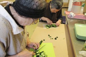 昼食後ゆっくりしたあと、みなさんと様々な体操で体を動かします。