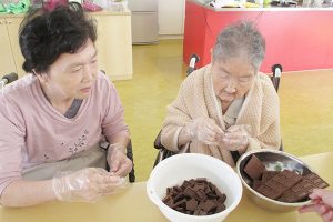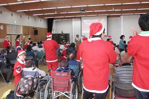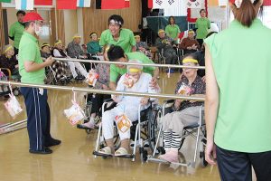 一人一人のご利用者に施設よりプレゼントを手渡しでお贈りしています。誕生会ではみなさんでお祝いします。