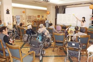 月1回、音楽の先生が来園され、みなさんで懐かしい歌を歌いながら楽しい時間を過ごします。